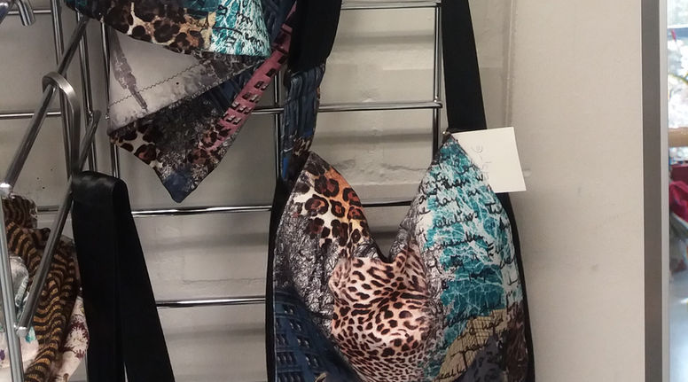 Die Taschen sind aus textilen Stoffen gearbeitet.